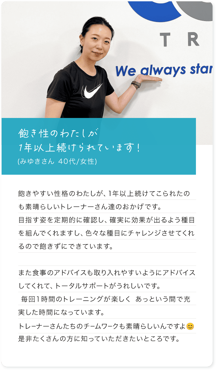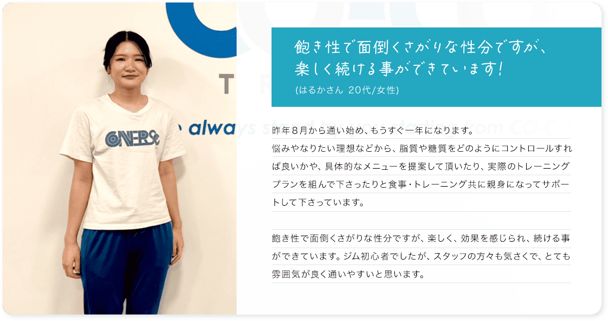 など、ご不安な点や疑問などお気軽にトレーナーにご相談ください。