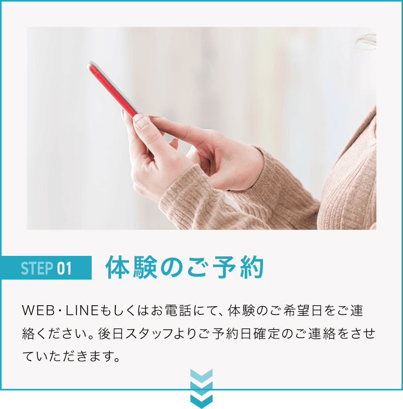 WEBもしくはお電話にて、体験のご希望日をご連絡ください。